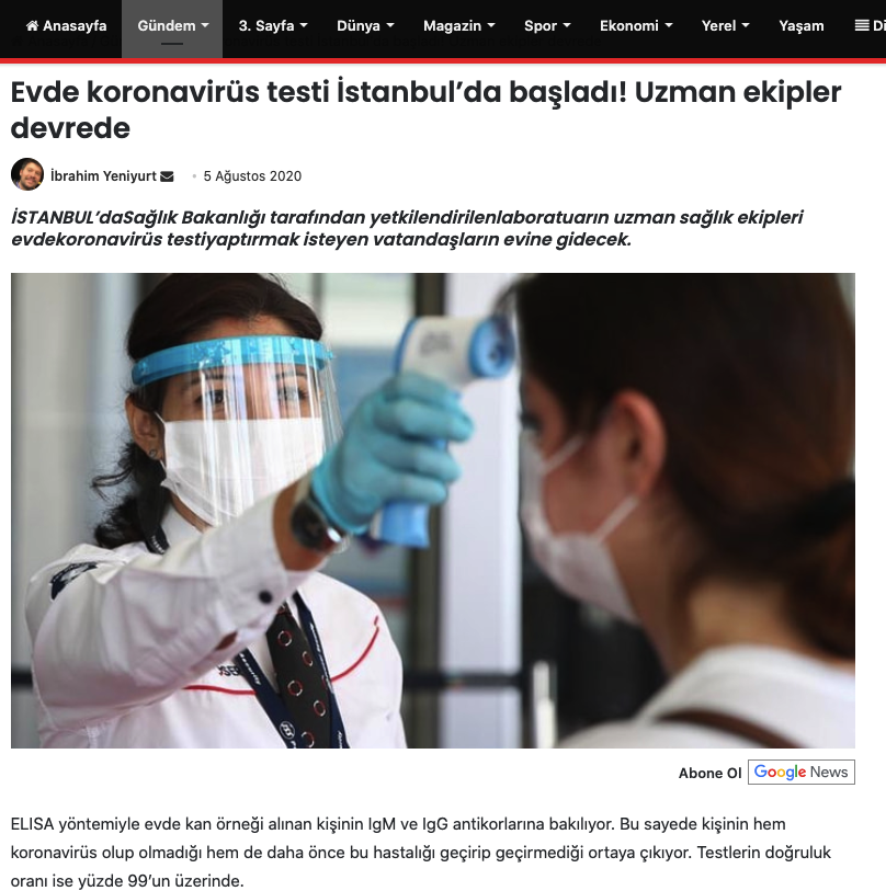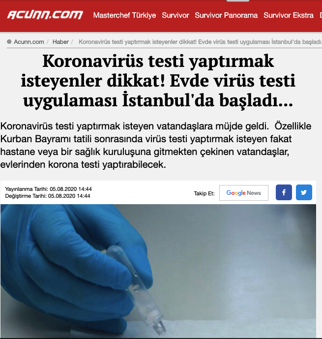 Acunn.com / Koronavirüs testi yaptırmak isteyenler dikkat! Evde virüs testi uygulaması İstanbul’da başladı…