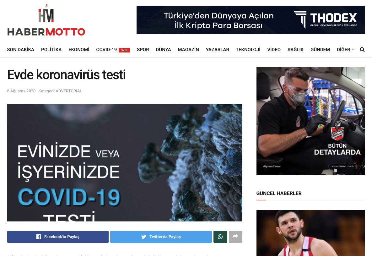 Habermotto.com / Evde koronavirüs testi