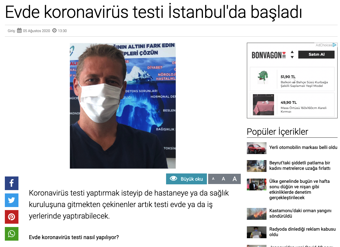 Koronavirüs testi yaptırmak isteyip de hastaneye ya da sağlık kuruluşuna gitmekten çekinenler artık testi evde ya da iş yerlerinde yaptırabilecek …