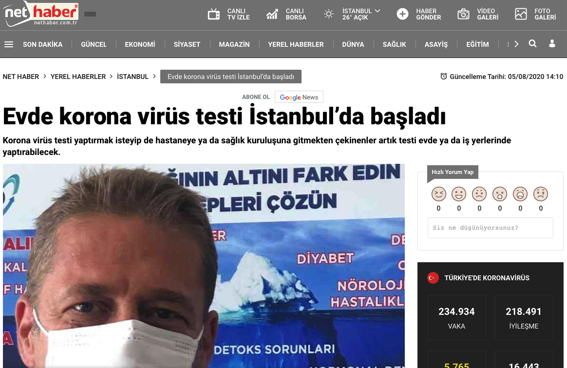 Nethaber.com / Evde korona virüs testi İstanbul’da başladı