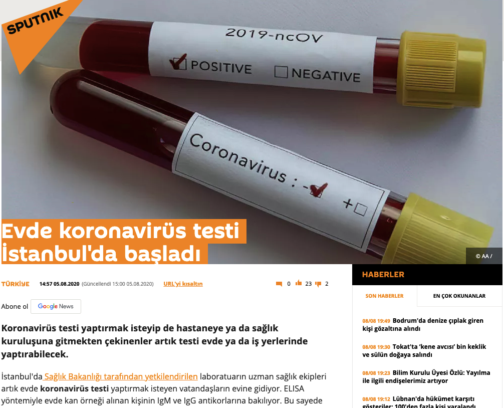 Sputnik / Evde koronavirüs testi İstanbul’da başladı